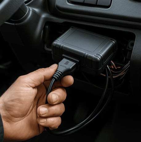 Un boîtier connecté installé sur chaque véhicule (poids lourd, utilitaire, engin)